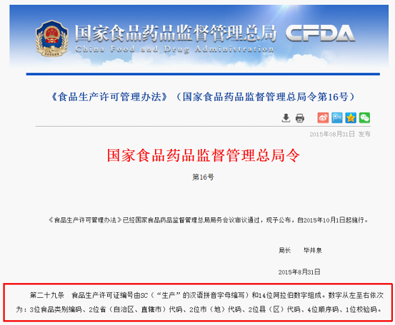 《食品生產許可管理辦法》(國家食品藥品監(jiān)督管理總局令第16號)