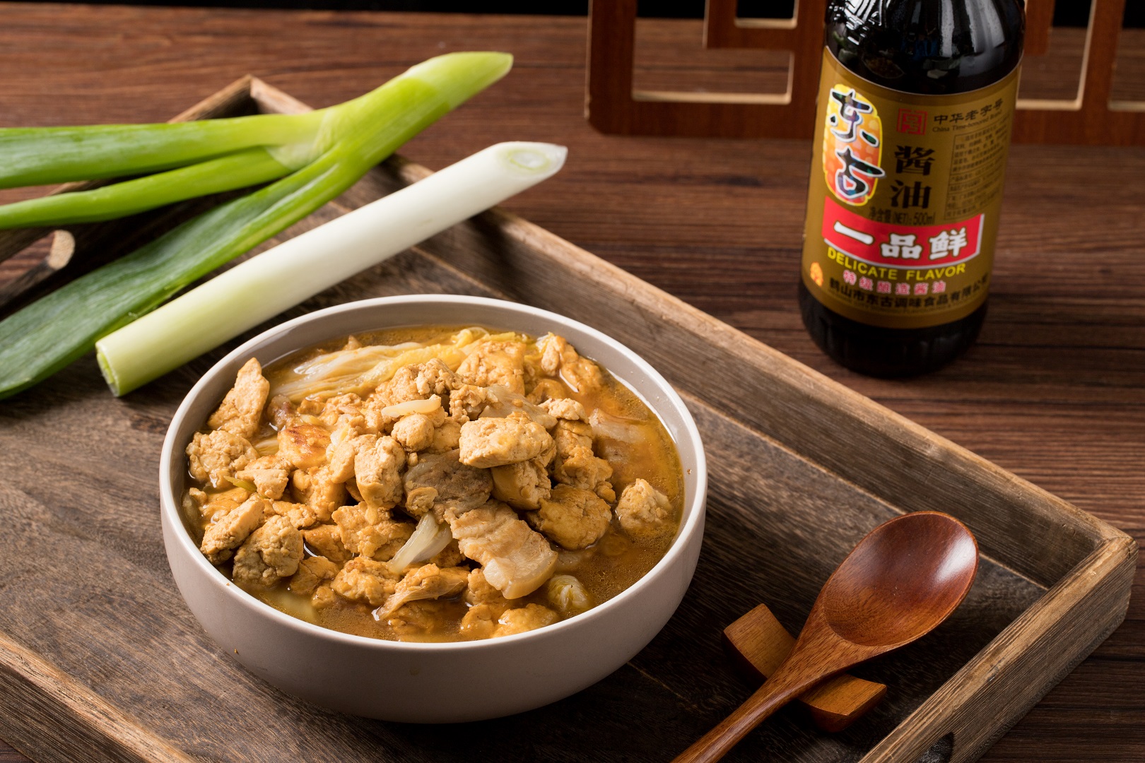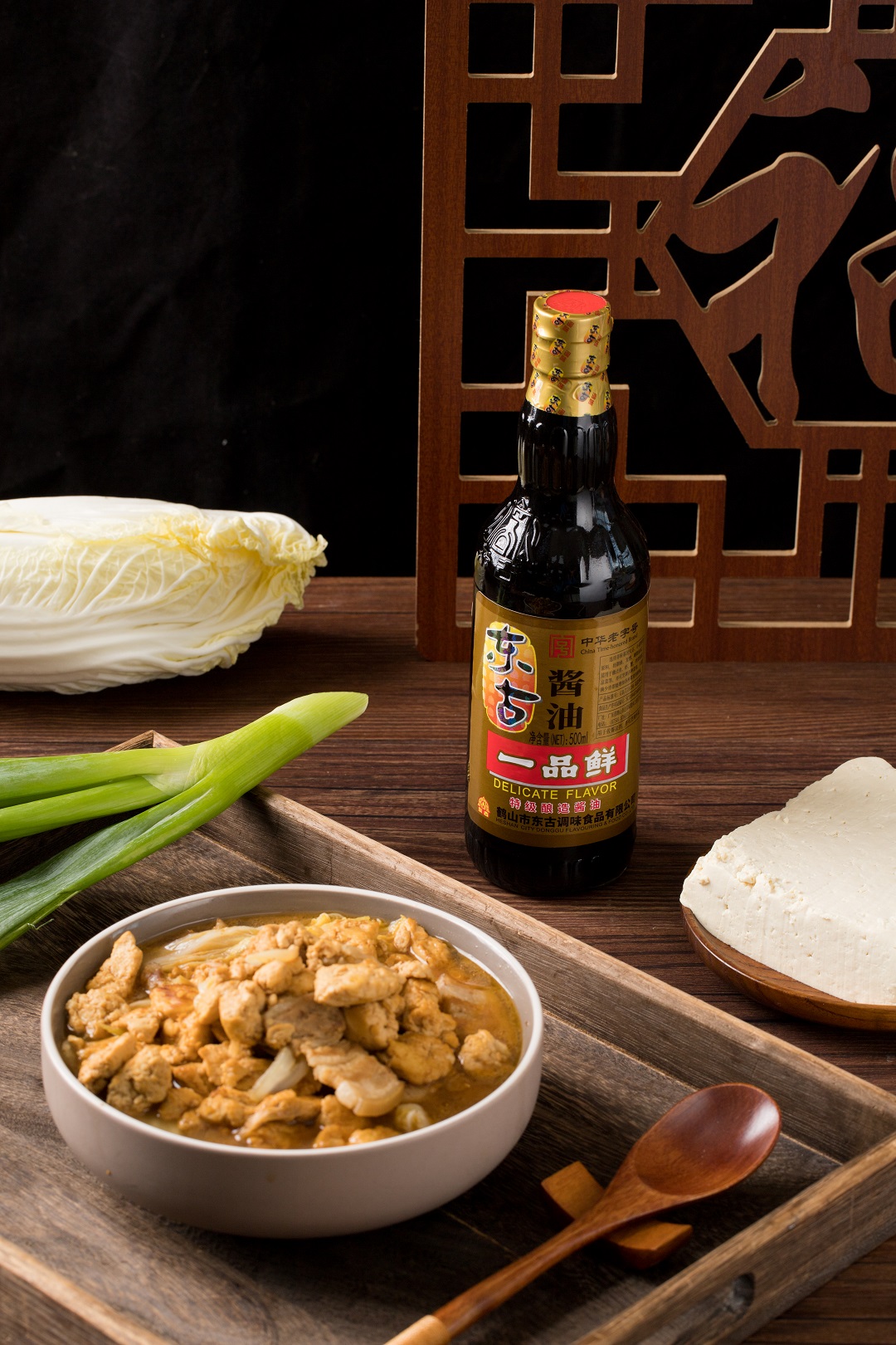 東古一品鮮醬油、東古一品鮮黃豆醬、東古草菇老抽、東古一品鮮雞精、白糖、胡椒粉