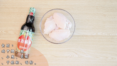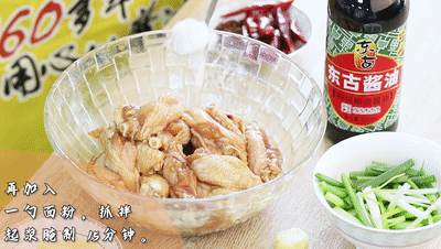 雞中翅、小蔥、姜、干辣椒、花椒、面粉