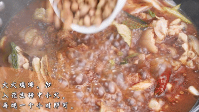 大火燒沸、加入花生轉(zhuǎn)中小火,再燉一個小時即可