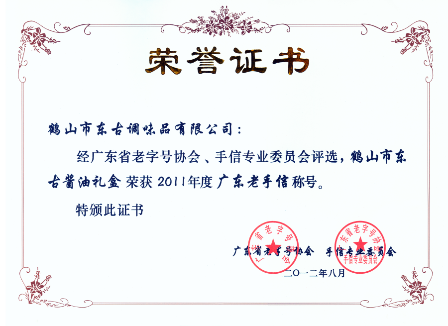 2011廣東省食品行業(yè)杰出貢獻企業(yè)