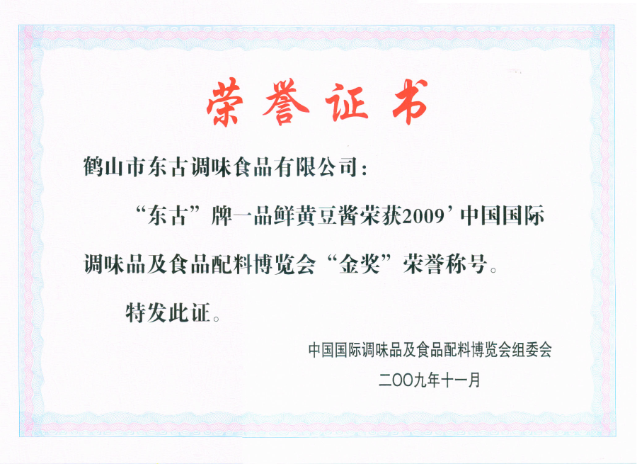 2009一品鮮黃豆醬09國際調(diào)味品及食品配料博覽會金獎