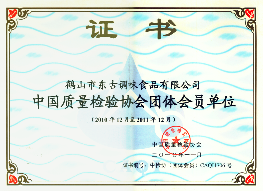 2010質(zhì)量協(xié)會會員單位證書