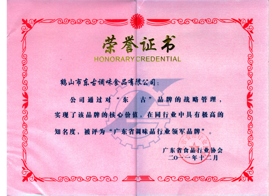 2011廣東省調(diào)味品行業(yè)領(lǐng)軍品牌